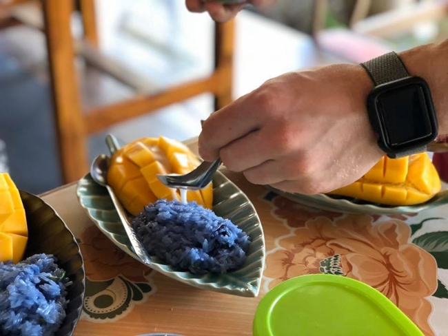 12.30 PM: Delicious Homemade Thai food at our restaurant surrounding by the elephants.